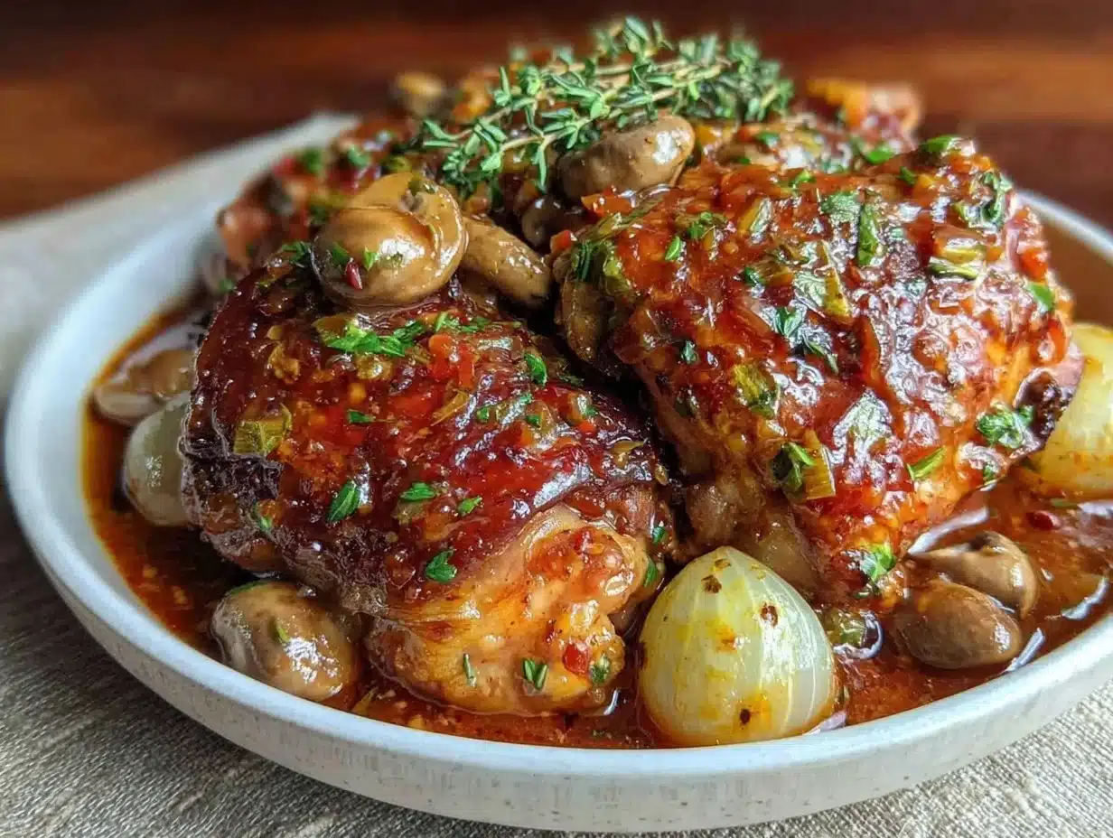 Let me tell you, the scent of tender chicken slowly simmering in a deep, velvety red wine sauce is enough to make anyone’s mouth water and heart skip a beat. The first time I made this classic coq au vin, I was instantly hooked—there’s something about the way the garlic, herbs, and wine mingle that creates the kind of moment where you pause, take a deep breath, and just smile because you know you’re onto something truly special. Honestly, it feels like a warm hug from the inside out.