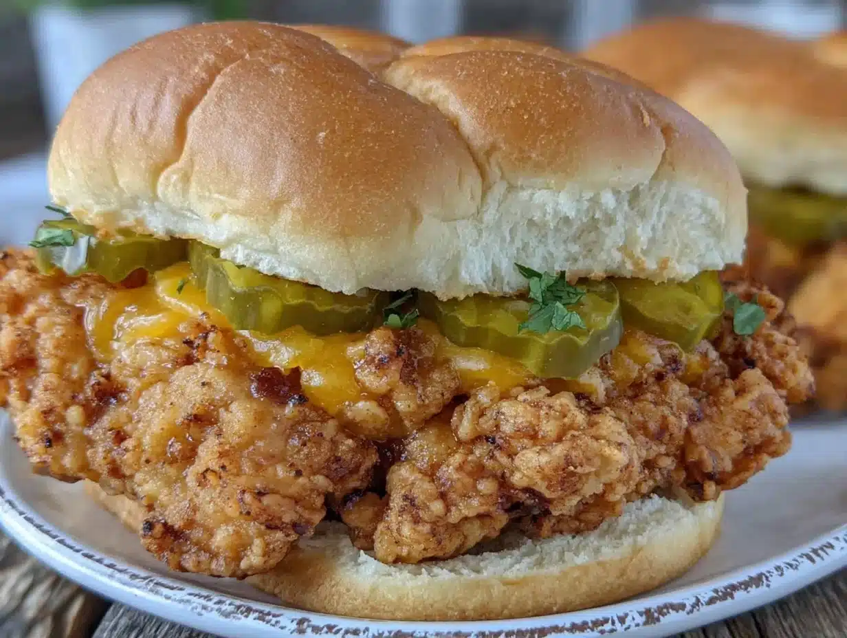 The flavors actually deepen a bit after resting overnight, but the breading does soften, so reheating crisply is key. If you don’t want to reheat the sandwich whole, just warm the chicken separately and assemble fresh.