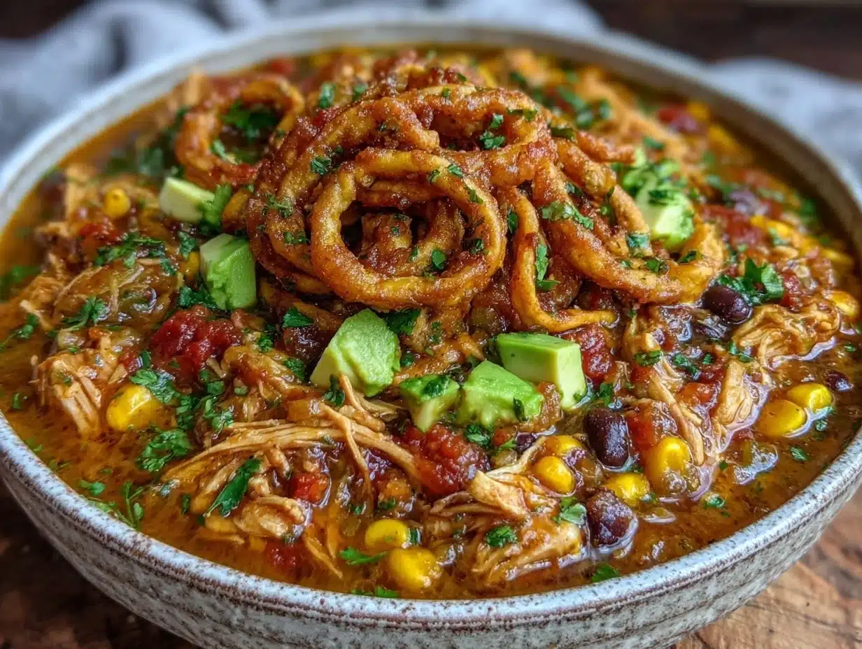 - Serve (2 minutes): Ladle soup into bowls and top generously with crispy tortilla strips and optional garnishes like avocado, cilantro, or cheese.