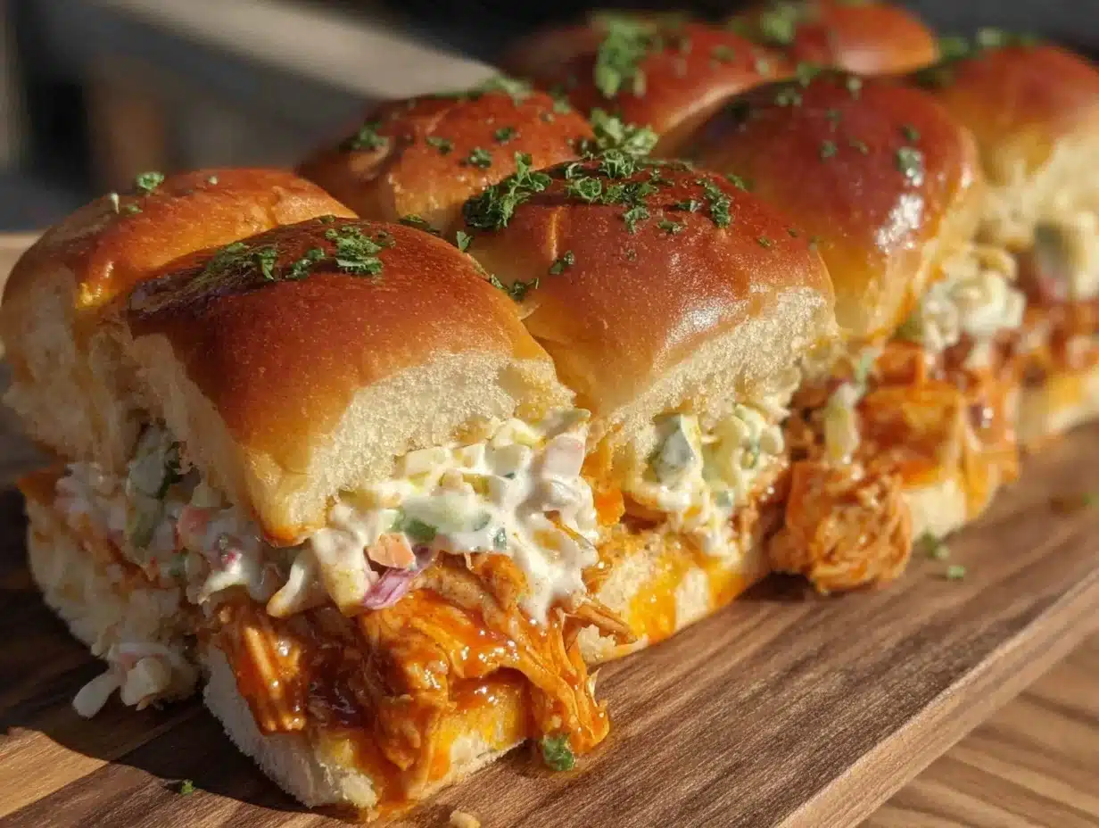 A quick and satisfying slow-cooked buffalo chicken slider recipe with creamy ranch coleslaw, perfect for busy weeknights or casual gatherings.