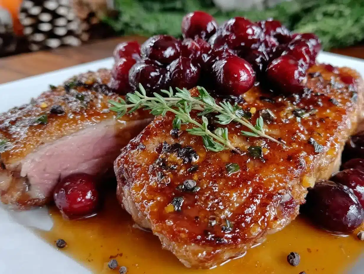 - Plate and Serve: Slice the duck breasts thinly against the grain. Spoon the warm cherry glaze over the top and garnish with extra fresh thyme if desired. Serve immediately to enjoy the contrast of crispy skin and silky glaze.