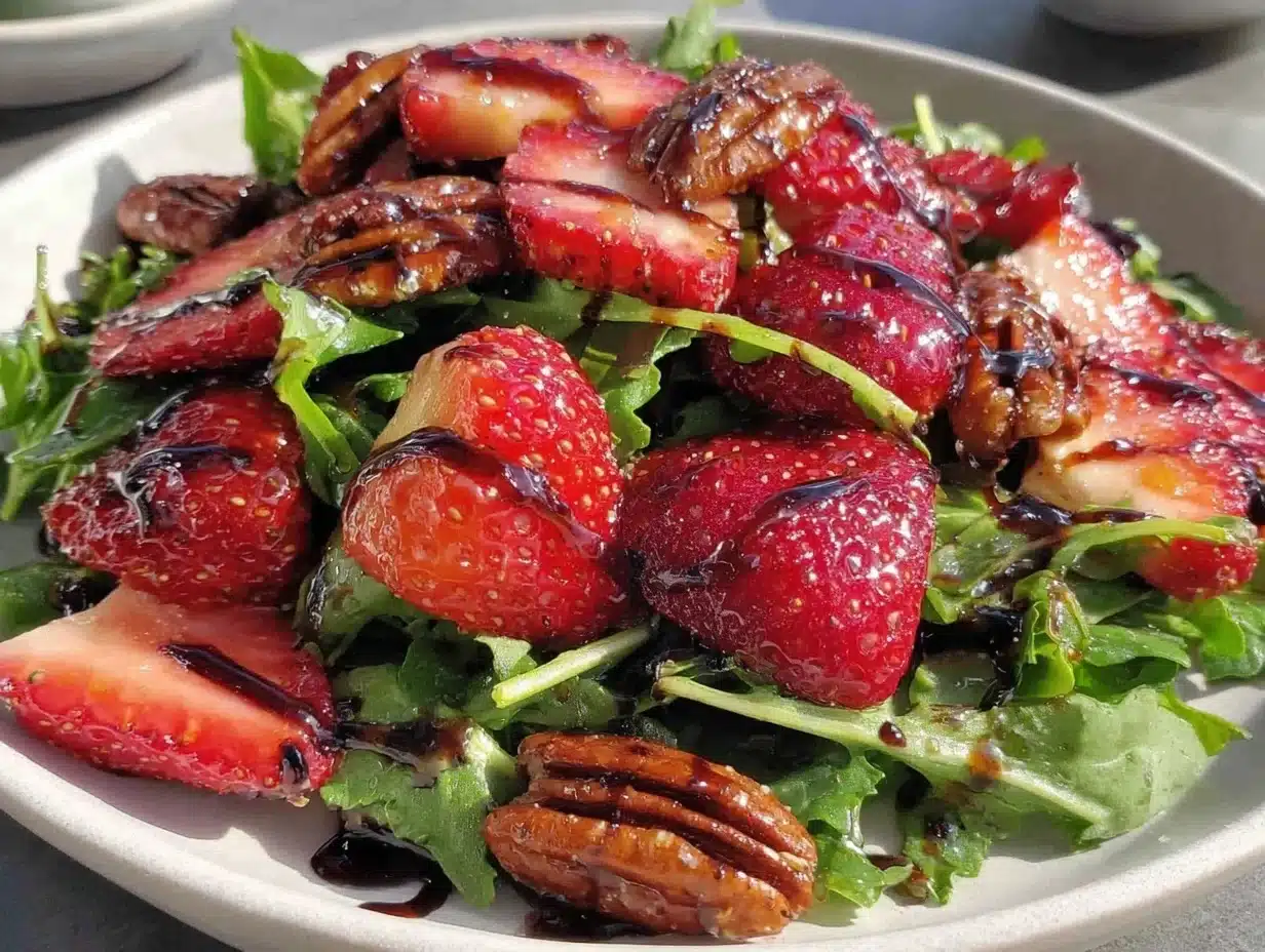 I wasn’t aiming for anything fancy, honestly. Just something quick to satisfy the lingering craving for something crisp and a little sweet after a week filled with heavy meals and takeout boxes cluttering the counter. That’s when the idea for this Fresh Strawberry Arugula Salad with Candied Pecans and Balsamic came to me—simple ingredients, but with a balance that felt like a little celebration in every bite.