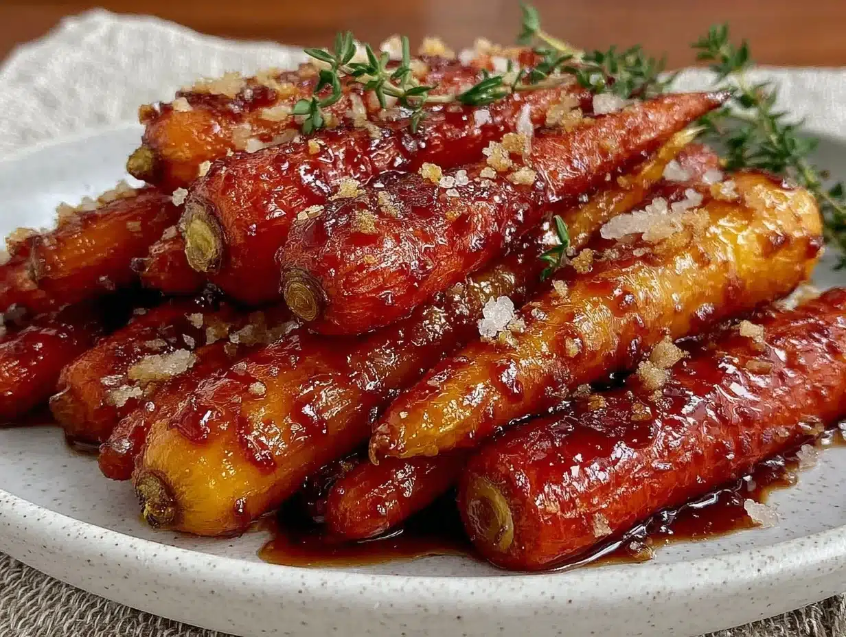 - Sprinkle fresh thyme leaves over the warm carrots to release aroma.